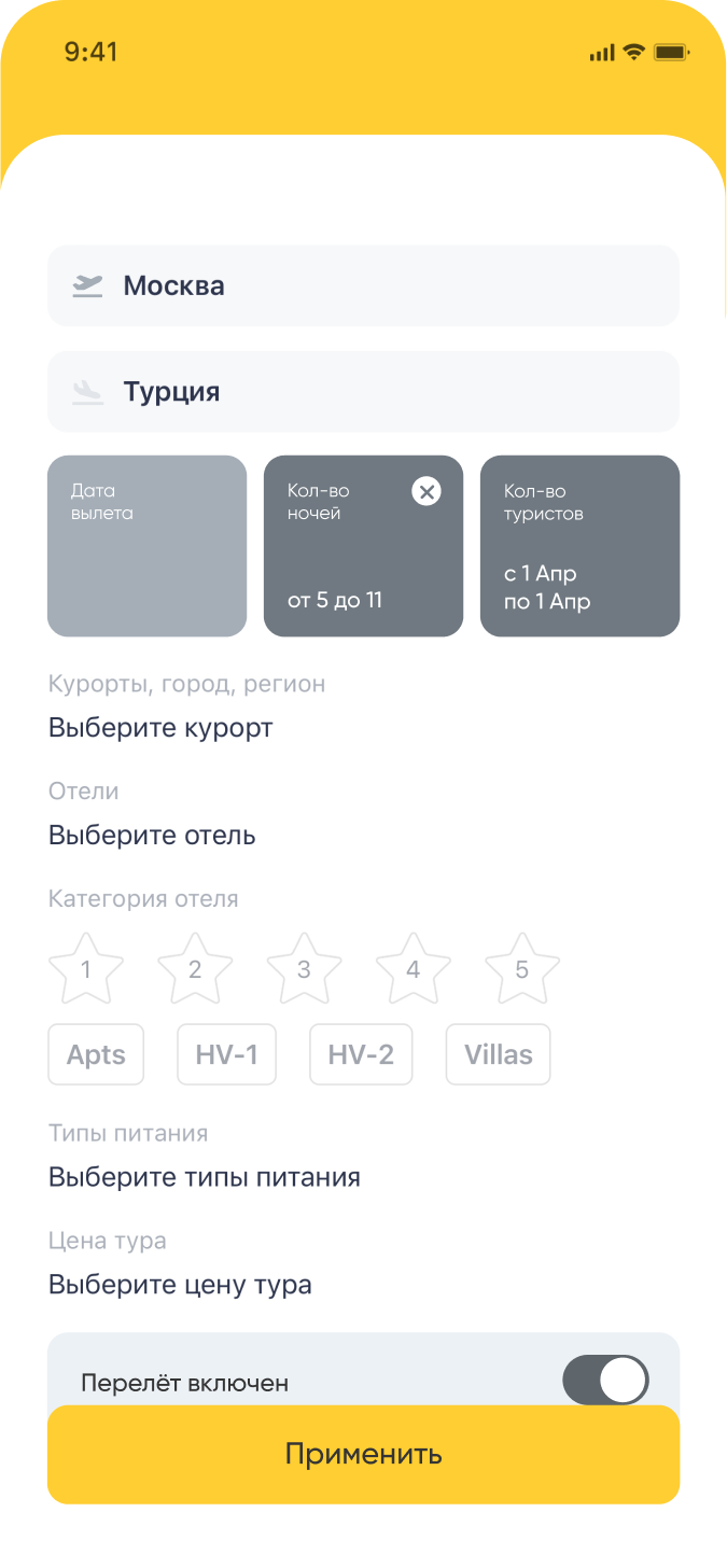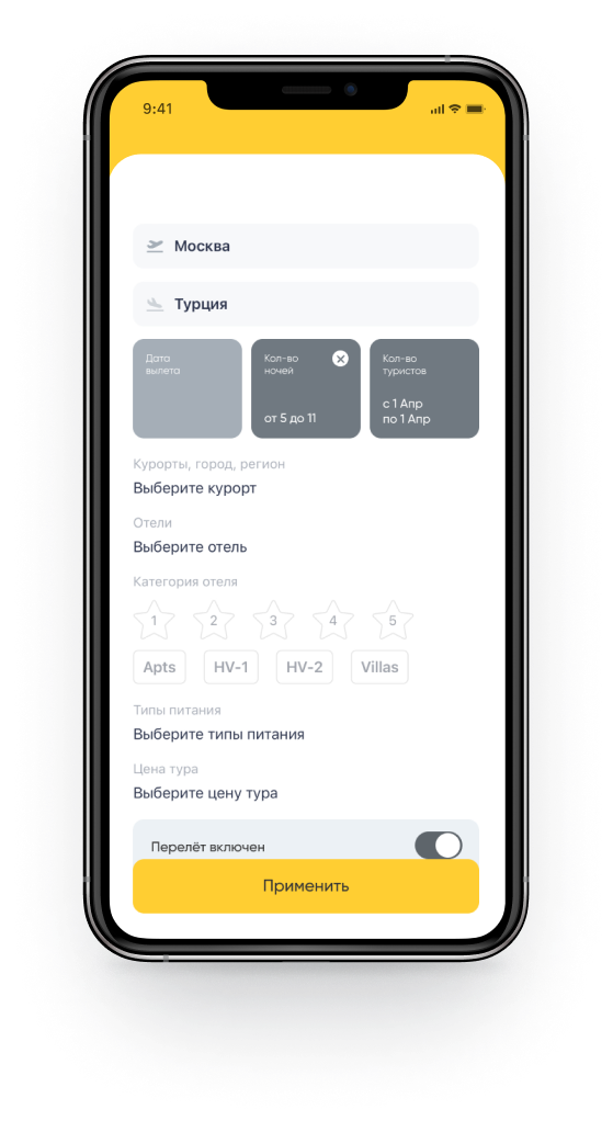 Вы указываете, какой тип отдыха, страна, бюджет вам подходит, и Myagent подбирает лучшие предложения