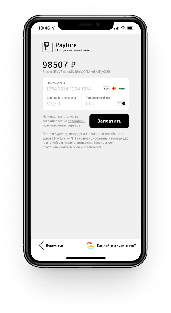 Процесс покупки тура проходит двухфакторную аутентификацию и защищен сквозным шифрованием