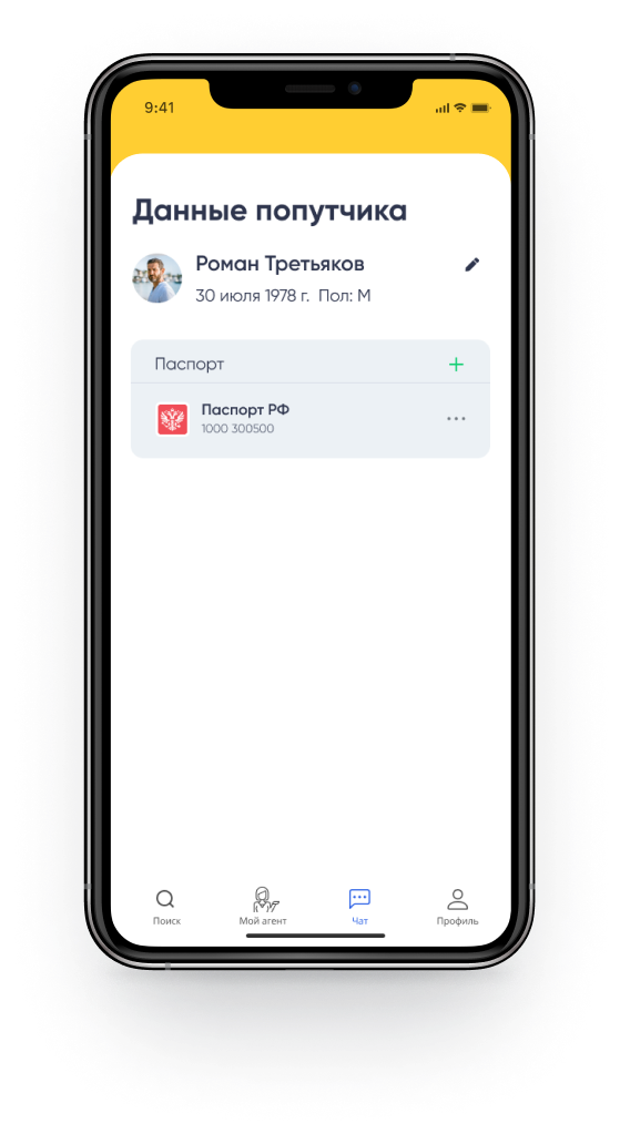 В приложении есть возможность сохранять личные документы как своих, так и попутчиков. Достаточно ввести данные один раз